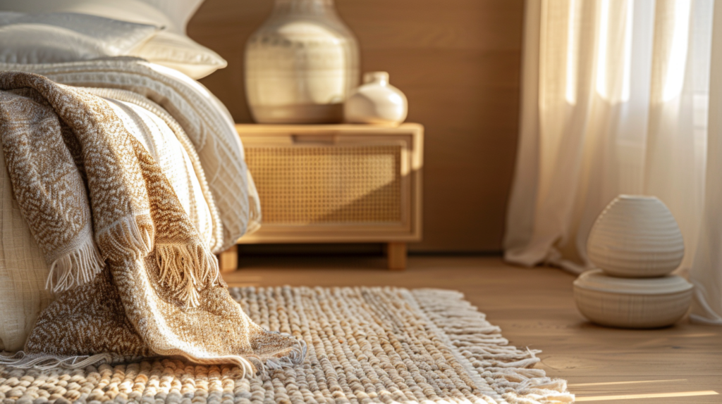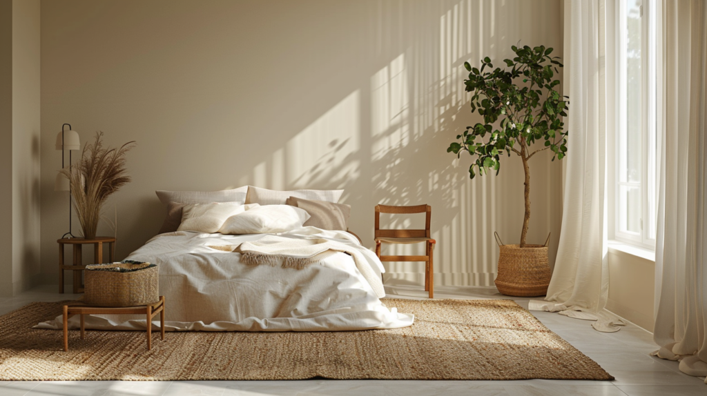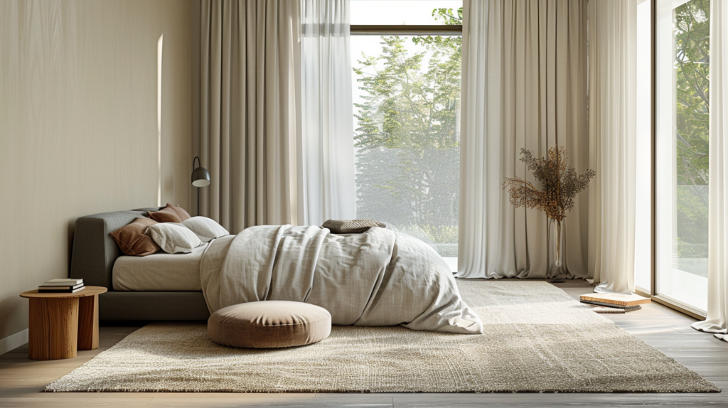 Rule: keep walls and big items quiet. Add interest through texture, not loud colors.