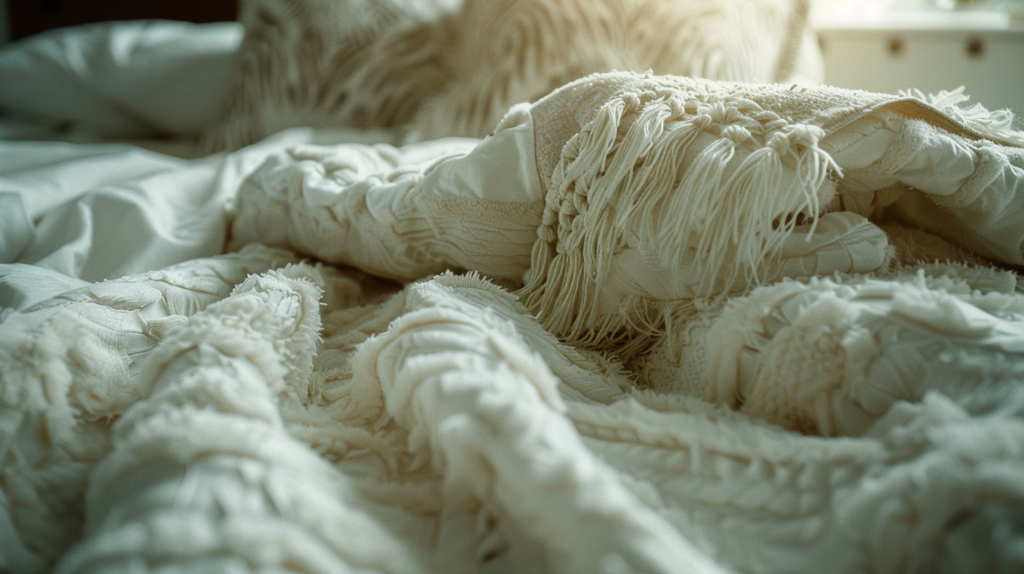 - Bedding layered (duvet + throw)