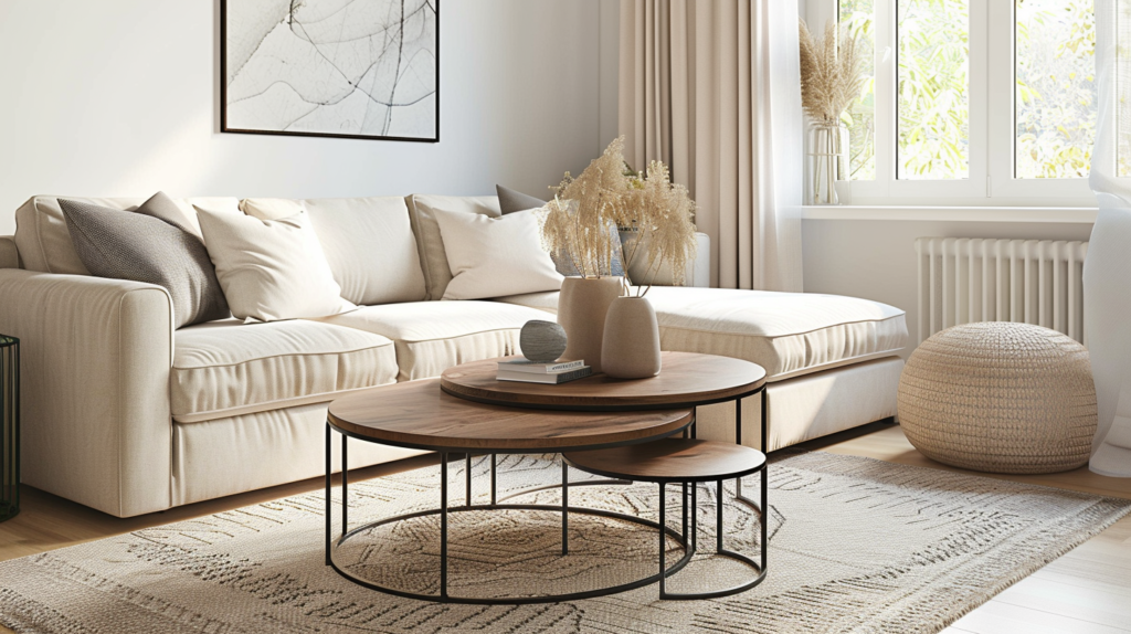 - For tight rooms: nesting tables or ottoman tray = smarter