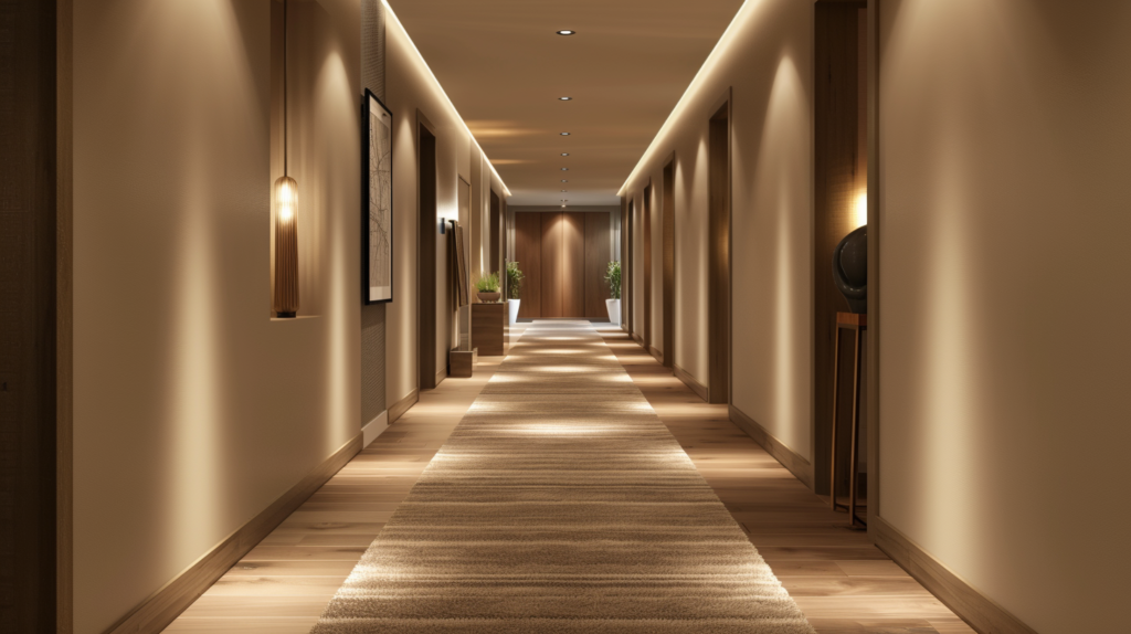- Hallway: leave a clean border of floor on both sides for a neat look.